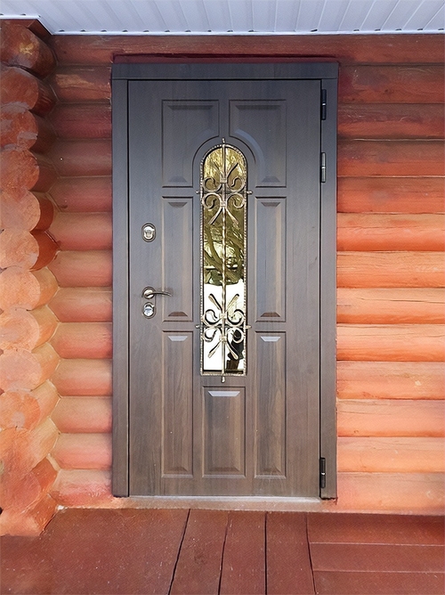Дверь в дом с ковкой и стеклопакетом
