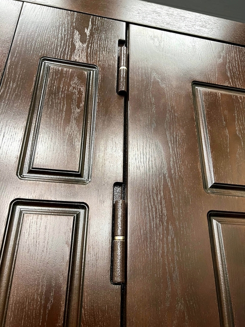 Дверь с коричневым МДФ на улице