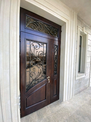 Дверь в дом с ковкой и стеклопакетом